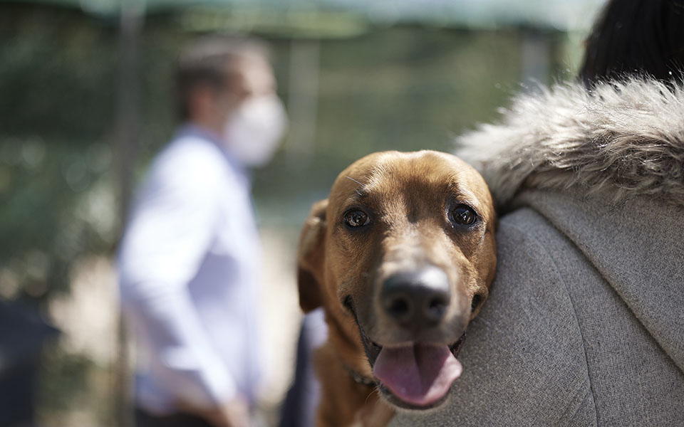 «Αυτός είναι ο σκύλος τον οποίο πρόσφατα υιοθετήσαμε και ο οποίος ενίοτε είναι λίγο φασαριόζος. Αλλά είναι η πρώτη φορά που παρεμβαίνει σε συνέντευξη Τύπου, συνήθως μας υποδέχεται στην πόρτα και είναι πιο ευγενής», είπε ο κ. Μητσοτάκης χαμογελώντας.