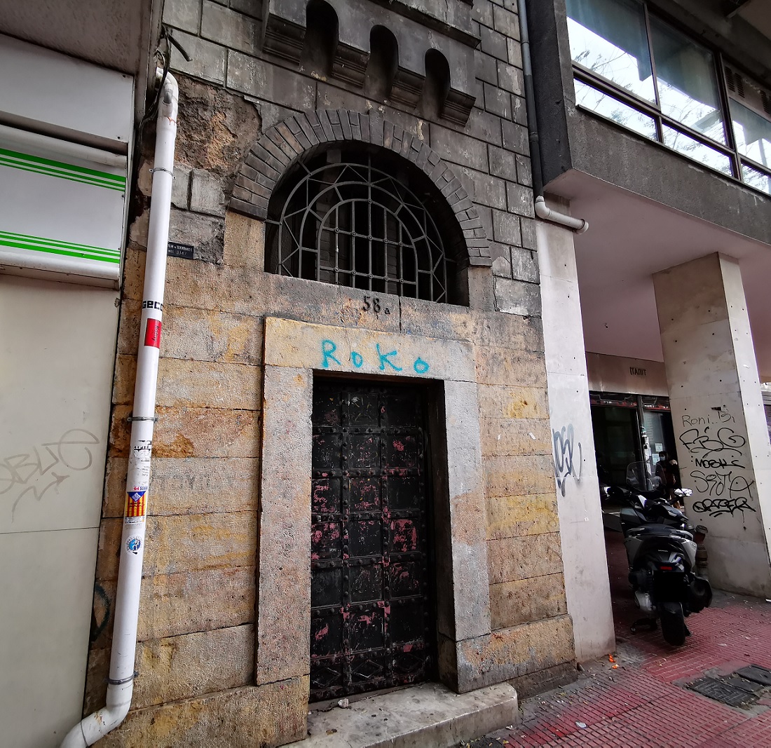 Η νεογοτθική στενή πόρτα με έναν δράκο στο θυρεό -έμεινε στη θέση του μέχρι το 1993- είναι σφηνωμένη ανάμεσα σε γκρίζες, βαρετές πολυκατοικίες. Σε κάθε περίπτωση, πρόκειται αναμφίβολα για μια αναρχική μικρή φέτα αρχιτεκτονικής που δεν είναι καθόλου απορίας άξιο που εξάπτει τη φαντασία των Αθηναίων δεκαετίες ολόκληρες τώρα.