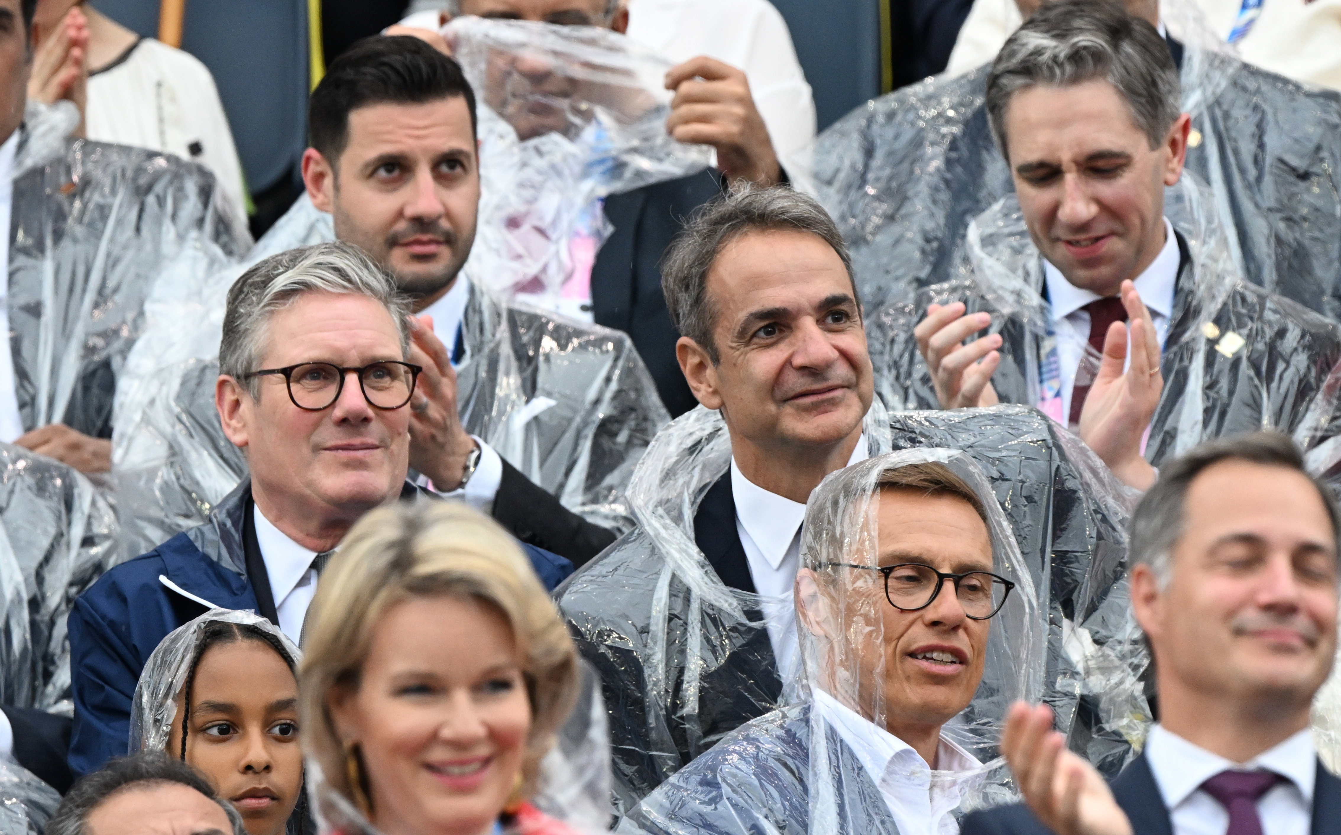 Ο Κυριάκος Μητσοτάκης με το αδιάβροχο δίπλα από τον Κιρ Στάρμερ