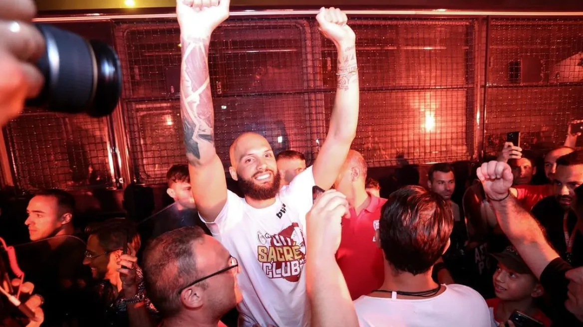 Ο 32χρονος που κατέκτησε με την Εθνική Γαλλίας το ασημένιο μετάλλιο στους Ολυμπιακούς Αγώνες του Παρισιού έγινε δεκτός με ενθουσιασμό από χιλιάδες φίλους του Ολυμπιακού στο «Ελ. Βενιζέλος» που δε πτοήθηκαν από τη μικρή καθυστέρηση που προέκυψε (αντί για τις 23:15 αφίχθη στις 23:45).
