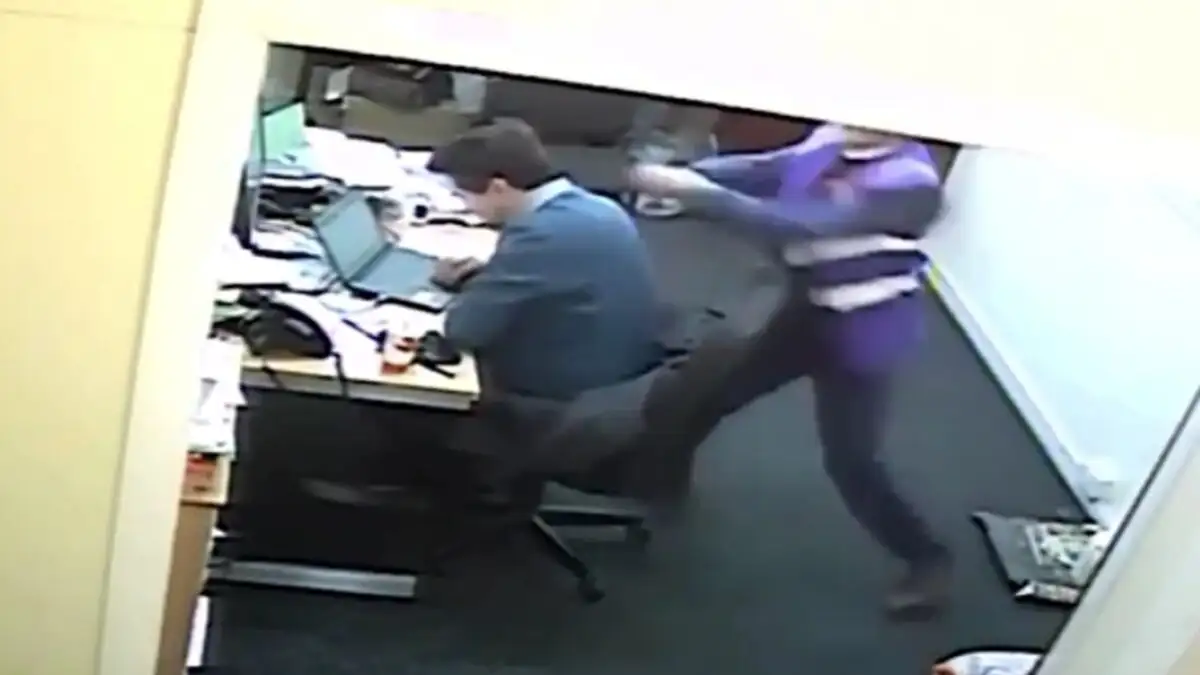 Όπως φαίνεται στο βίντεο, ο 54χρονος Anthony John Felton, χτυπά επανειλημμένα τον 51χρονο υποδιευθυντή Richard Pyke, με ένα μεγάλο μεταλλικό κλειδί, ενώ εκείνος καθόταν στο γραφείο του.