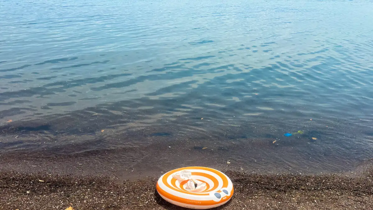 Μια γυναίκα φαίνεται να διασχίζει τον δρόμο προς την παραλιακή ζώνη. Διακρίνεται να σπρώχνει ένα καρότσι μέσα στο οποίο βρίσκεται ένα παιδί, ενώ την ίδια ώρα μαζί της βρίσκονται άλλα δύο παιδιά.