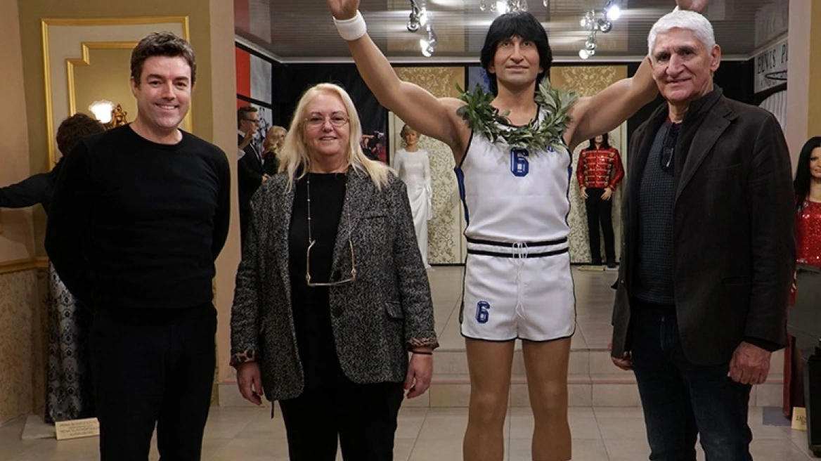 Εμπνευσμένο από τις στιγμές του πανηγυρισμού της μεγάλης νίκης της Εθνικής Ελλάδος στο Ευρωπαϊκό Πρωτάθλημα Μπάσκετ του 1987, το κέρινο ομοίωμα του Παναγιώτη Γιαννάκη είναι σε φυσικό μέγεθος, έχοντας ύψος 1,92 μ. και στο λαιμό του φοράει το στεφάνι της νίκης, μια εικόνα που αποτυπώθηκε στη φωτογραφία η οποία έκανε τότε τον γύρο του κόσμου και τον χαρακτηρίζει μέχρι σήμερα.