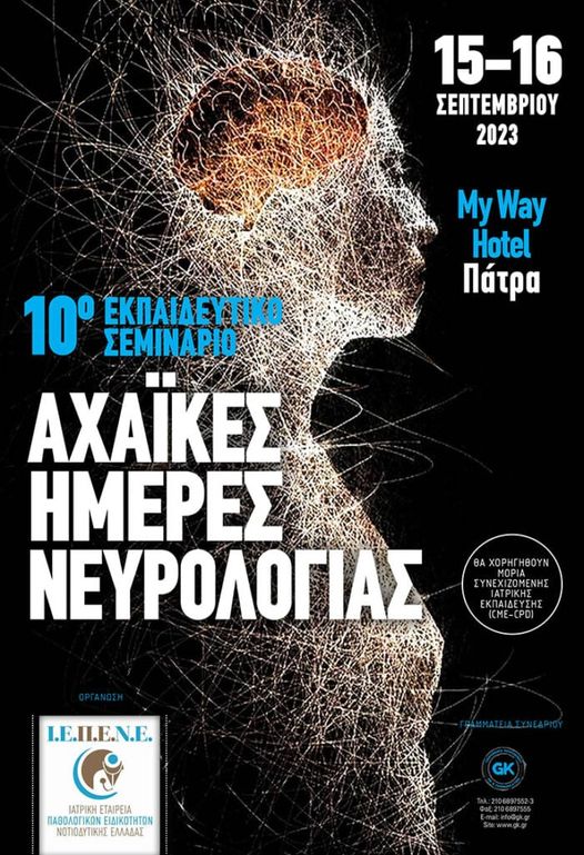 Το Νευρολογικό Τμήμα του Γ.Ν.Π. «Ο ΑΓΙΟΣ ΑΝΔΡΕΑΣ», υπό την αιγίδα της Ιατρικής Εταιρείας Παθολογικών Ειδικοτήτων Νοτιό-Δυτικής Ελλάδος και σε συνεργασία με τα τμήματα Συντονισμού Γενικής Ιατρικής του Γ.Ν.Π. και Π.Γ.Ν.Π., διοργανώνει για μια ακόμα χρονιά διημερίδα με διεθνή συμμετοχή και θέμα:2εςΑχαϊκές Ημέρες Νευρολογίας, στην Πάτρα στο MyWayHotel στις 15-16 Σεπτεμβρίου 2023.