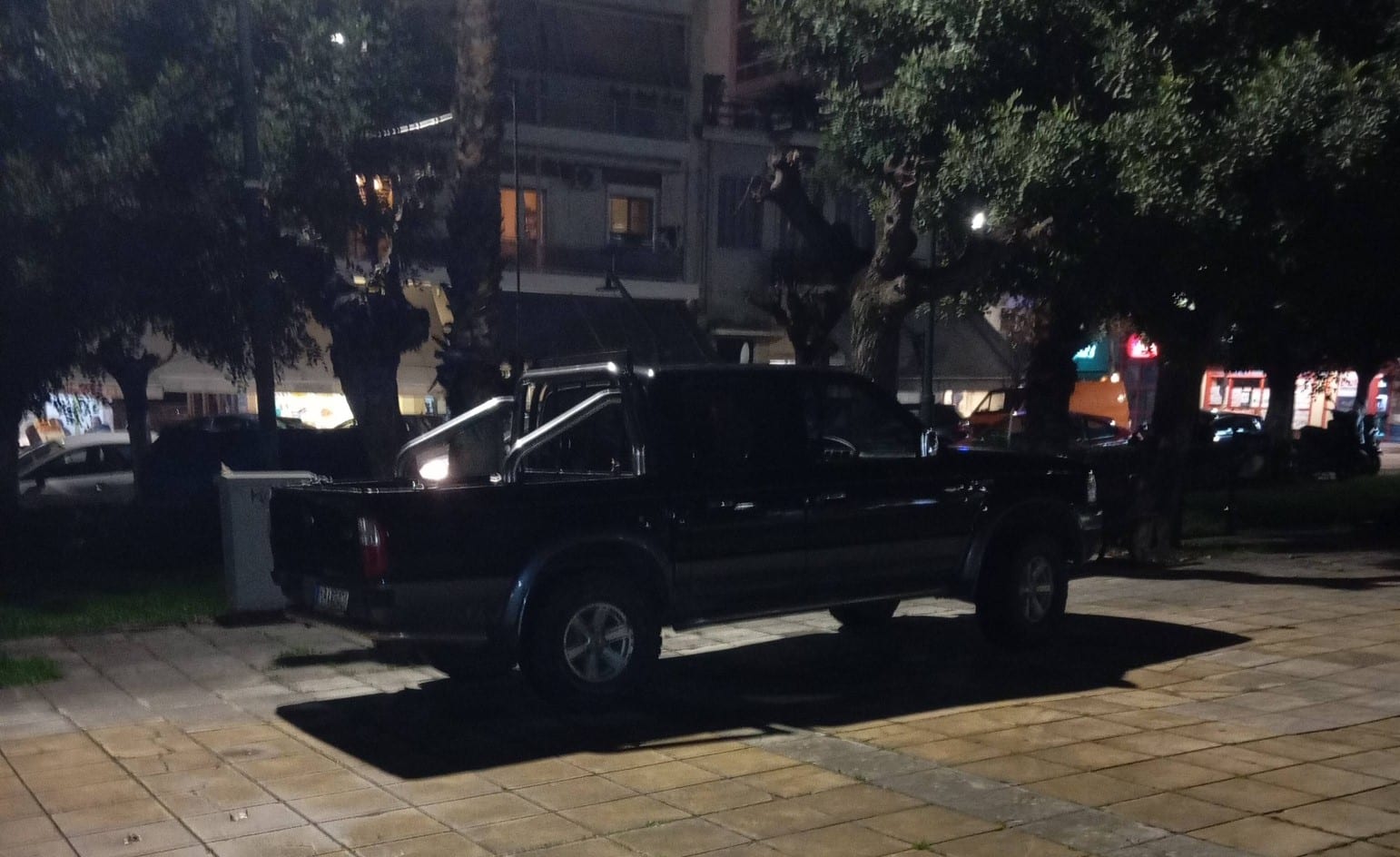 Αυτή και αν ήταν στάθμευση. Την φωτογραφία ανέβασε ο αθλητικός συντάκτης Γιώργος Αυγερόπουλος. Πλατεία Ομονοίας στην Πάτρα, νύχτα Δευτέρας. Ο οδηγός πάρκαρε το αγροτικό του πάνω στην Πλατεία.