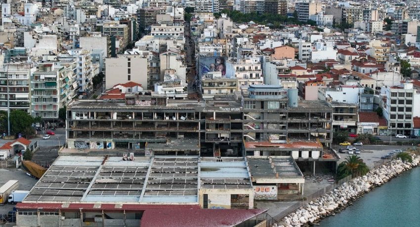Το drone του Βασίλη Μαυρομύτη «πέταξε» πάνω από το κτίριο δίνοντας μια άλλη διάσταση για την κατάσταση που βρίσκεται το τεράστιο αυτό συγκρότημα που δεν μπορεί εύκολα να συλλάβει το μάτι ενός διερχόμενου.