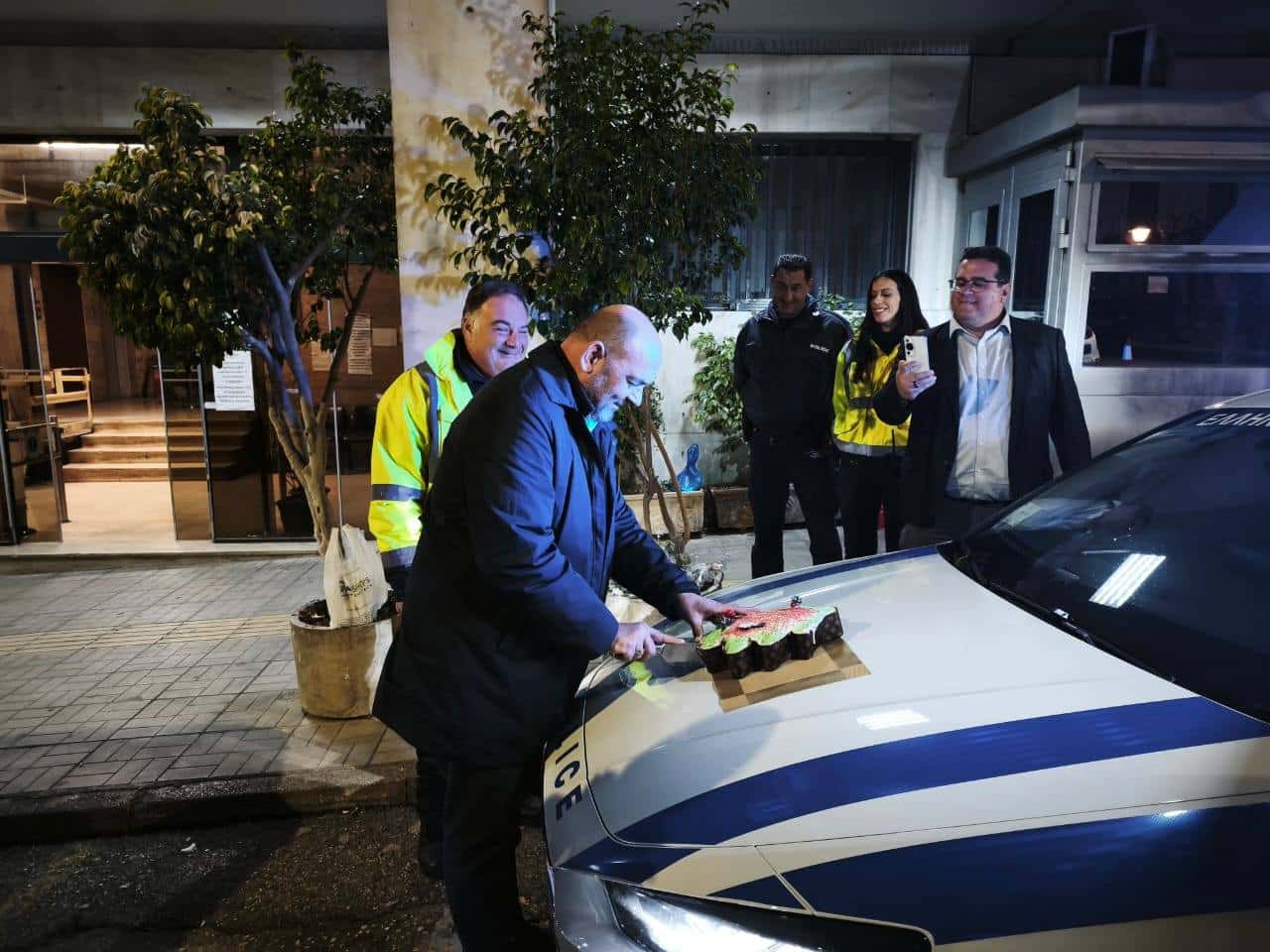 Στη συνέχεια, στον δρόμο, μαζί με αστυνομικούς της Τροχαίας Πατρών, του Β΄ Αστυνομικού Τμήματος, της Υποδιεύθυνσης Δίωξης και Εξιχνίασης Εγκλημάτων και της Διμοιρίας Υποστήριξης, κόψαμε την παραδοσιακή βασιλόπιτα και ανταλλάξαμε ευχές για το νέο έτος.