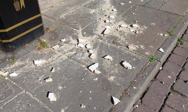 Ευτυχώς εκείνη την στιγμή δεν περνούσε πεζός από το σημείο. Ωστόσο, η Αστυνομία ειδοποιήθηκε και άμεσα τοποθετήθηκε προστατευτική κορδέλα στο σημείο για να αποφευχθεί τραυματισμός.
