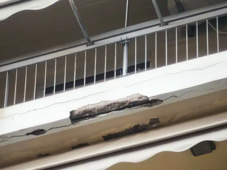 Κίνδυνο κατάρρευσης σοβάδων σε πολυκατοικία στην Πάτρα, καταγγέλει Πατρινός, εκφράζοντας έντονη ανησυχία για την κατάσταση του κτιρίου.