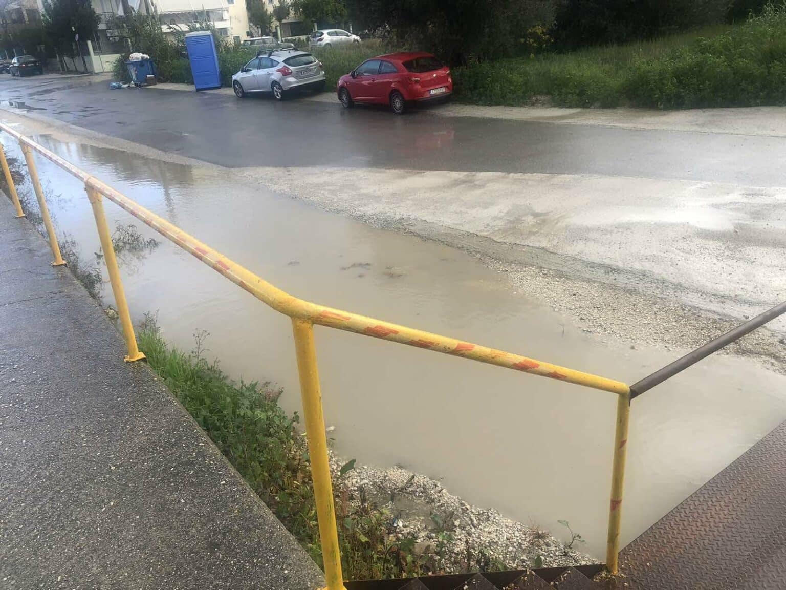 Απηύδησαν οι επιβάτες του Προαστιακού στην οδό Διγενή Ακρίτα, καθώς, για να προσεγγίσουν τον προορισμό τους, έπρεπε να προσπελάσουν μια «λίμνη» με λασπόνερα.