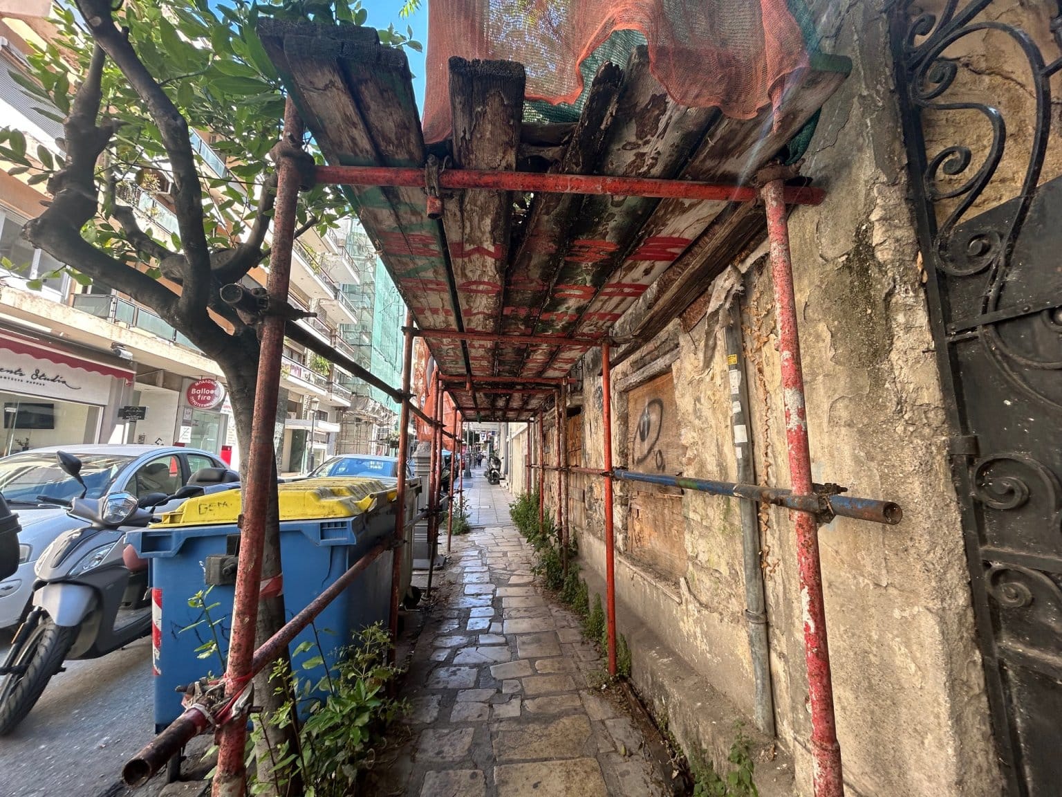 Και το ερώτημα που προκύπει είναι εύλογο, πέρα φυσικά από το σκέλος που αφορά στην ασφάλεια των περαστικών: ο τοίχος του κτιρίου μπορεί να αντέξει κι άλλο υποστηριζόμενος από μια τόσο σαπισμένη ξύλινη σκαλωσιά; Ειδικά σε περίπτωση μιας νέας σεισμικής δόνησης; Ειδικοί δεν είμαστε αλλά επικαλούμενοι απόψεις Μηχανικών, η απάντηση δεν είναι καθόλου αισιόδοξη…