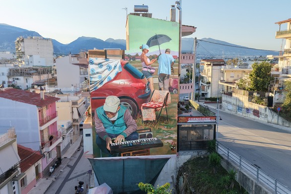 Η νέα του τοιχογραφία υλοποιήθηκε στο πλαίσιο του ArtWalk 10 από την Art In Progress και προσθέτει στην Πάτρα ένα ακόμη ποίημα δημόσιας τέχνης.