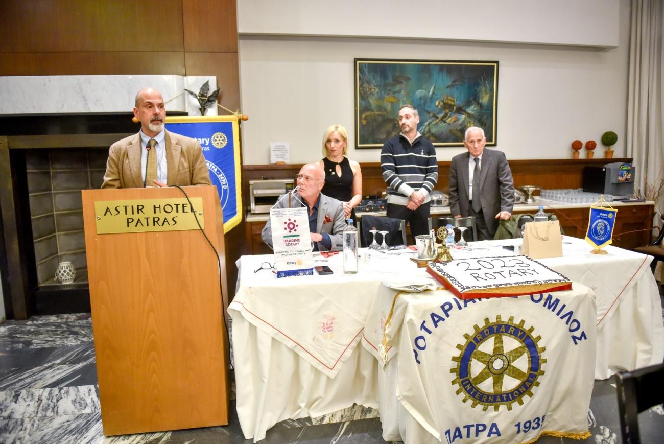 “Με μεγάλη μας χαρά υποδεχθήκαμε τον πρώην Διοικητή (2020-2021) της 2470 ΡΠ ροτ. Γιώργο Μαύρο, τον Αντιπεριφερειάρχη κ. Χαράλαμπο Μπονάνο, την Πρόεδρο του Σοροπτιμιστικού Ομίλου «Δανιηλίς» κα. Ελένη Γκίκα, μέλη του Ομίλου “Inner Wheel Patra-Europea”, την Πρόεδρο του Σωματείου Ατόμων με Νόσο Crohn και Ελκώδη Κολίτιδα Αχαΐας κα. Νίκη Παπαγιαννοπούλου, τον ποιητή και λογοτέχνη κ. Αντώνη Σκιαθά, τον κ. Ανδρέα Μαθιόπουλο, Προϊστάμενο της Διεύθυνσης Παιδείας-Πολιτισμού-Αθλητισμού-Τουρισμού & Απασχόλησης της ΠΔΕ, την κα. Ντορίνα Μπορονικολού-Κιτσούκαλη από τον Σύλλογο Αποφοίτων Αρσακείου Πατρών και πολλούς και εκλεκτούς καλούς μας φίλους. Τυχεροί της βραδιάς η ροτ. Σία Ρόδη η οποία κέρδισε το «φλουρί», προσφορά του ροτ. Ντίνου Ξένου και ο ροτ. Μάριος Διδάχος, ο οποίος κέρδισε μια διήμερη εκδρομή για 2 άτομα, προσφορά του Ταξιδιωτικού Γραφείου Γεωργαντά”