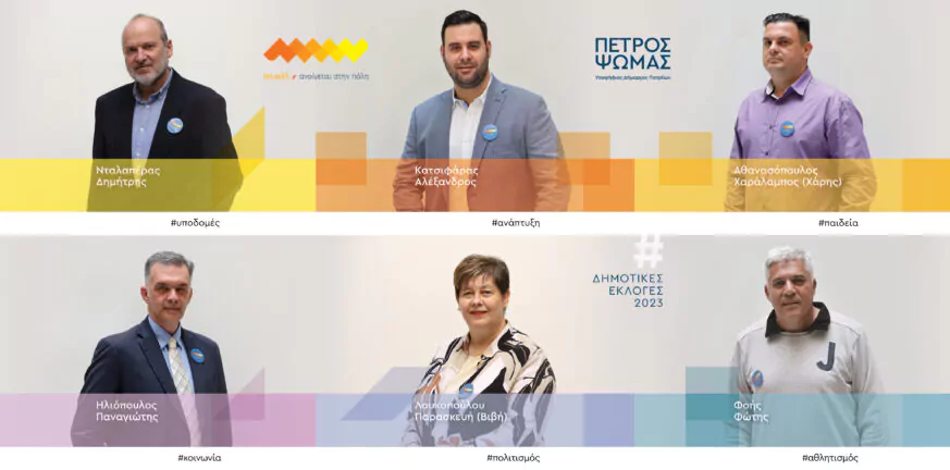 Έξι νέα πρόσωπα, με το δικό τους ξεχωριστό αποτύπωμα στην κοινωνία της Πάτρας, που ξεκινούν μεν από διαφορετικές αφετηρίες, πλην όμως, διαθέτουν από το περίσσευμα της δικής τους δυναμικής για το συλλογικό καλό και το κοινό όραμα του σπιράλ για μια Πάτρα πιο ανθρώπινη, καθαρή, λειτουργική, προσβάσιμη και μια δημοτική αρχή που να σέβεται τους δημότες της!