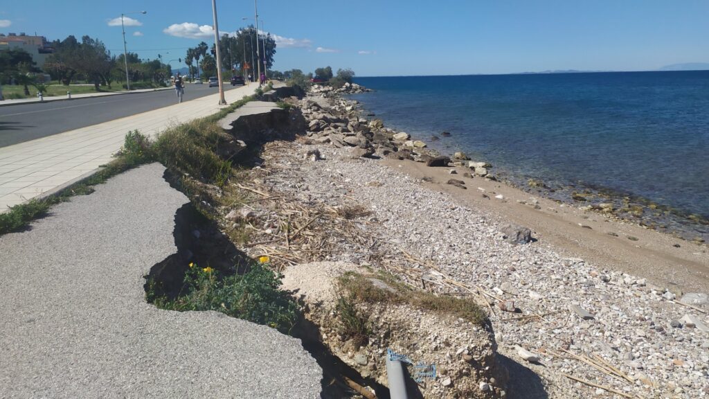Η δημοτική αρχή κατά την εκπόνηση της μελέτης του έργου δεν έλαβε υπόψη της τη διάβρωση που παρατηρείται για χρόνια κατά μήκος της ακτογραμμής; Σε άλλο σημείο εντός των ορίων της χάραξης του ποδηλατόδρομου στο πάρκο της Τερψιθέας έχουν προκληθεί ζημιές στην εγκαταλελειμμένη τεχνητή λίμνη, αφού έχουν αφαιρεθεί ή έχουν καταστραφεί, τα προστατευτικά κιγκλιδώματα και οι βάσεις στήριξης. Αντί να τοποθετηθούν νέες προστατευτικές κατασκευές θεωρήθηκε σκόπιμο να καλυφθούν με λευκό μπετόν με αποτέλεσμα να ελλοχεύει κίνδυνος ατυχημάτων ιδιαίτερα παιδιών που επισκέπτονται το σημείο!!