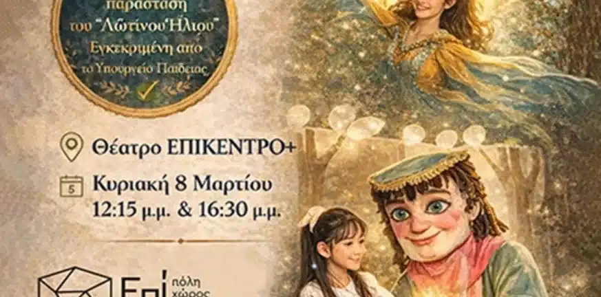 Το ΕΠΙΚΕΝΤΡΟ+ φιλοξενεί τον «Λώτινο Ήλιο» που παρουσιάζει τη θεατρική παράσταση για όλη την οικογένεια «Ο Μεγαλύτερος Θησαυρός του Κόσμου»