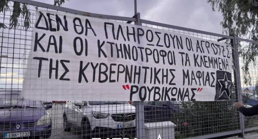 Τις προηγούμενες μέρες, αναρτήθηκαν πανό σε 15 περιοχές της χώρας, μεταξύ ατυτών και στην Πάτρα, καταγγέλλοντας το οργανωμένο έγκλημα που συντελείται σε βάρος της αγροτιάς.