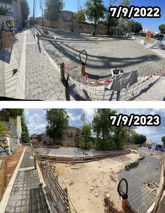 Ελπίζαμε ότι θα υπήρχε η ελάχιστη ευσυνειδησία. Βαλτωμένα τα πάντα, όπως χάθηκε όλη η άνοιξη, έτσι και όλο το καλοκαίρι. Εγκατάλειψη, πρόχειρα σίδερα, παλέτες ως φράγματα, ελεύθερα οικοδομικά υλικά, πρόκες, φυτρωμένα βάτα, σκουπίδια, πινακίδες ετοιμόρροπες. Αν συμβεί το οποίο ατύχημα θα βρεθεί κάποιος να αναλάβει τις ευθύνες; Συνεχίζονται αναπλάσεις στις γειτονιές , αλλά υπάρχει αλήθεια νόημα για όσα και αν καλά γίνονται, όταν έξω από ένα σχολείο υπάρχει αυτή η κατάσταση… Διαμαρτυρίες πολλές και προς όλες τις κατευθύνσεις».