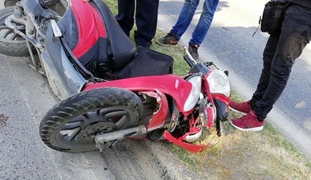 Απίστευτο τροχαίο ατύχημα στη Νέα Εθνική οδό και Διγενή Ακρίτα στις 3 μ.μ. της Τρίτης. Οδηγός δικύκλου (διανομέας) έχασε τον έλεγχο του οχήματος, γλίστρησε και βρέθηκε στο έδαφος ελαφρά τραυματισμένος. Διερχόμενος έσπευσε να τον βοηθήσει και στην προσπάθειά του να σηκώσει το μηχανάκι, γύρισε το “γκάζι” με αποτέλεσμα αυτό να εκτιναχτεί και να πέσει πάνω σε ένα διερχόμενο όχημα. Επί τόπου η Τροχαία για την διερεύνηση των συνθηκών του ατυχήματος. ΦΩΤΟ ΑΡΧΕΙΟΥ