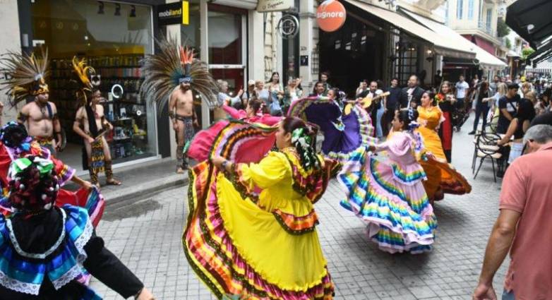 Το μεσημέρι της Δευτέρας 3 Σεπτεμβρίου οι πεζόδρομοι της Αγίου Νικολάου και της Ρήγα Φεραίου γέμισαν από χρώμα, κίνηση και μουσικές, με το χορευτικό BalletFolklorico DE OCCIDENTE από το Μεξικό, το οποίο συμμετείχε στο Φεστιβάλ να πραγματοποιεί μια μοναδική χορευτική εμφάνιση, αιφνιδιάζοντας ευχάριστα όσους βρέθηκαν εκεί.