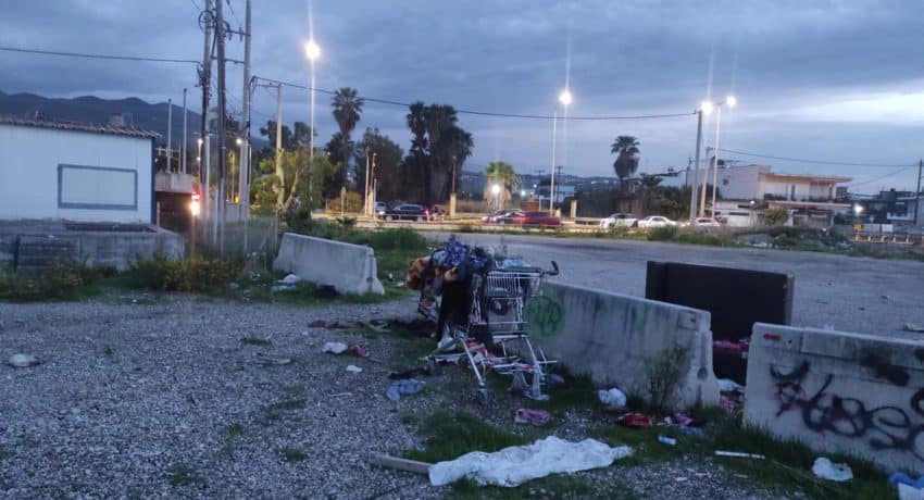 • Σκουπίδια, ρούχα και κουβέρτες διάσπαρτα, από προσωρινή διαµονής σκηνιτών