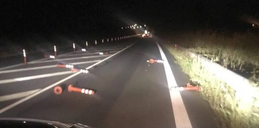 Συγκεκριμένα, στο ρεύμα προς Πύργο, μετά τη διασταύρωση για Γαστούνη, και για ένα περίπου χιλιόμετρο πάνω στο οδόστρωμα υπάρχουν διάσπαρτα δεκάδες ξηλωμένα κολωνάκια σήμανσης.