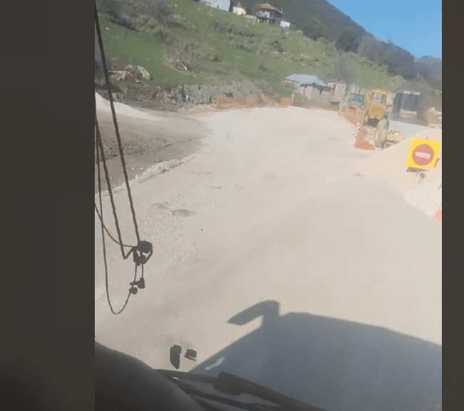 Οι οδηγοί μπορούν πλέον να διέρχονται από το σημείο όπου είχε σημειωθεί η σοβαρή καθίζηση (θέση “Χάνι του Θεοφάνη”, περίπου 3,5 χλμ. έξω από τη Δίβρη). Στην φωτογραφία φαίνεται το σημείο των εργασιών όπου το οδόστρωμα έχει αποκατασταθεί προσωρινά με χωματουργικές παρεμβάσεις για να επιτραπεί η διέλευση.Ο δρόμος στο συγκεκριμένο σημείο παραμένει εργοτάξιο με χωματόδρομο, οπότε απαιτείται χαμηλή ταχύτητα και μεγάλη προσοχή. Υπάρχουν πάντω; προειδοποιητικές πινακίδες και μηχανήματα έργου στην άκρη του δρόμου.