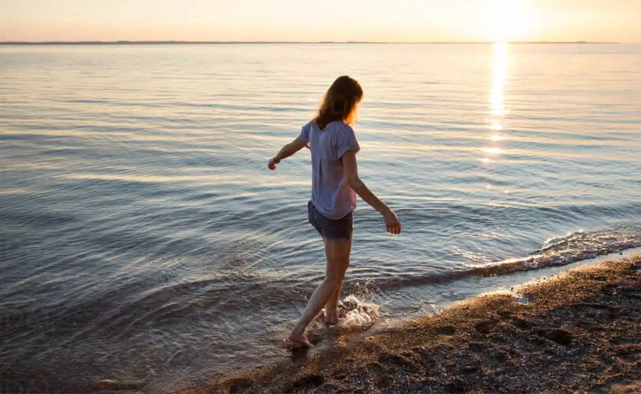 Η επαφή με τη γη -γνωστή και ως grounding- έχει συνδεθεί με μείωση της φλεγμονής, του άγχους και της αϋπνίας. Το περπάτημα ξυπόλητη στην άμμο είναι μια καθημερινή μορφή διαλογισμού χωρίς προσπάθεια.