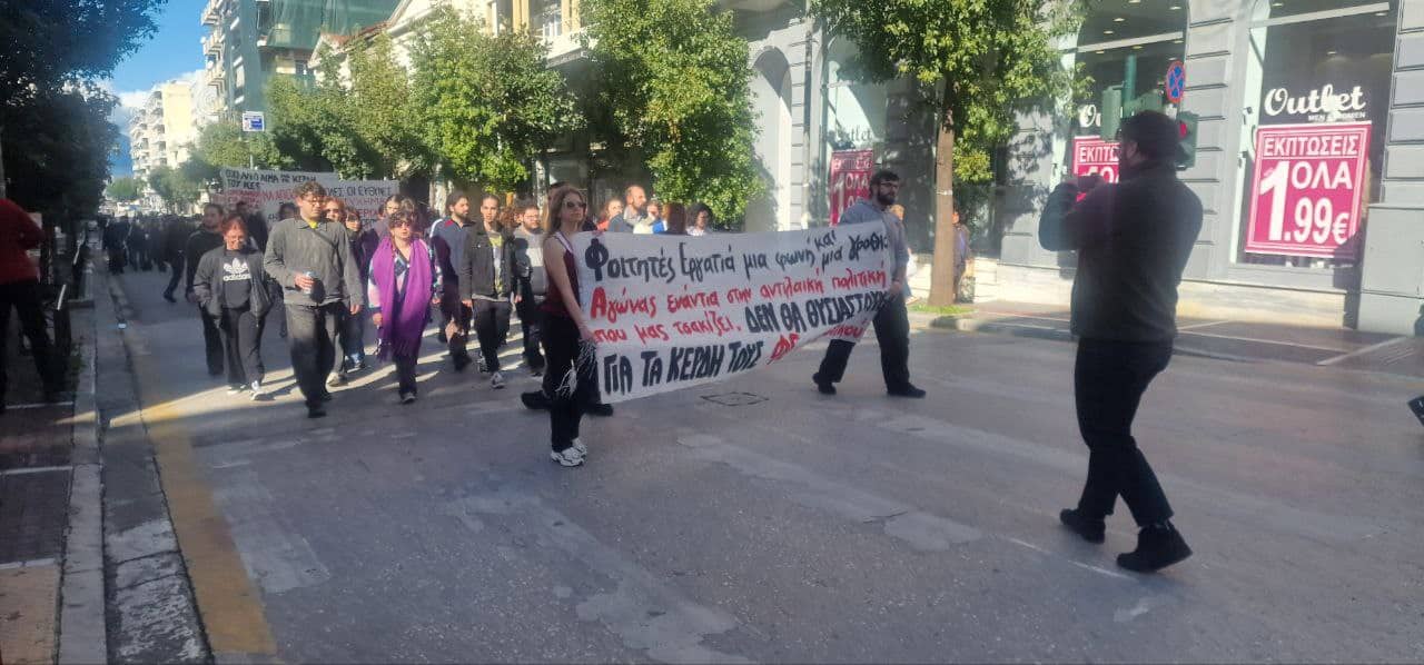 Στη διαμαρτυρία συμμετείχαν φοιτητικοί σύλλογοι και σωματεία εργαζομένων, εκφράζοντας την αντίδρασή τους για το πολύνεκρο εργατικό δυστύχημα στο εργοστάσιο στα Τρίκαλα, ζητώντας παράλληλα να αποδοθούν ευθύνες και να ληφθούν ουσιαστικά μέτρα για την προστασία της ζωής και της ασφάλειας στους χώρους εργασίας.