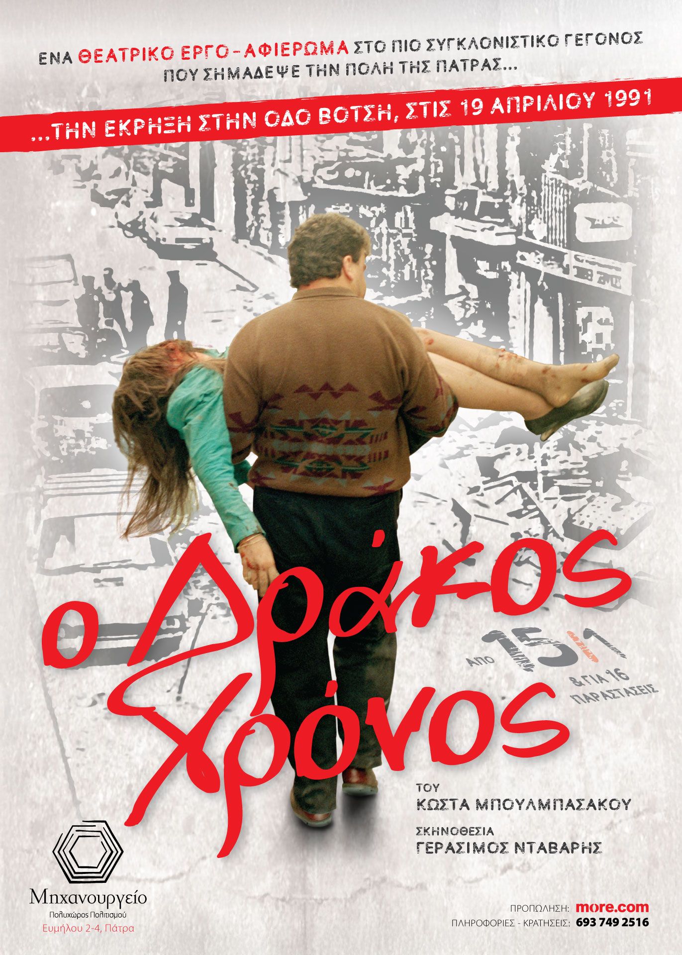 Ο «δράκος Χρόνος» είναι ένα θεατρικό έργο, αφιέρωμα στο πιο συγκλονιστικό γεγονός που σημάδεψε την πόλη μας, την έκρηξη στην οδό Βότση 14, στις 19 Απριλίου 1991. Πρόκειται για μια πρωτότυπη σύνθεση η οποία εκτός από το σενάριο και την σκηνοθεσία, την σκηνογραφία και την μουσική, συνυπάρχουν η ποίηση και η ερευνητική δημοσιογραφία μέσα από δημοσιεύματα των εφημερίδων της εποχής (Ριζοσπάστης, Τα Νέα, Το Βήμα, Μακεδονία, Γεγονότα και Πελοπόννησος, στοιχεία από τηλεοπτικό ρεπορτάζ και ραδιοφωνικές ενημερωτικές εκπομπές).