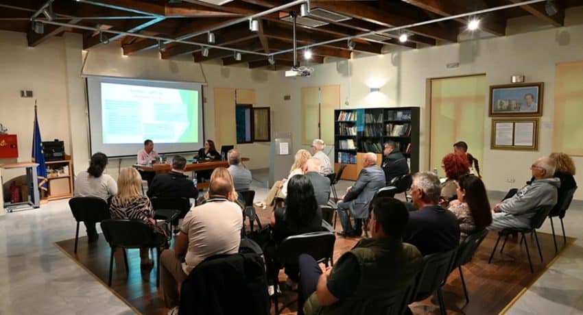 Ακολούθησε η παρουσίαση του έργου από την επιστημονική συνεργάτη του Συλλόγου και κοινωνική λειτουργό, κα Φωτεινή Κριλή, η οποία παρουσίασε τους στόχους, τις δράσεις και τα αναμενόμενα αποτελέσματα του έργου. Η κα Κριλή επισήμανε ότι το «ΚΟΙΝΩ-ΔΡΩ 50» στοχεύει στην ενδυνάμωση 50 ευάλωτων πολιτών μέσω συνεδριών ψυχοκοινωνικής υποστήριξης, διανομής βασικών αγαθών, λειτουργίας της ψηφιακής πλατφόρμας «Γέφυρα Αλληλεγγύης» και ανάπτυξης ενός τοπικού δικτύου κοινωνικής προσφοράς και απασχολησιμότητας.