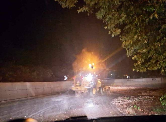 Στην επαρχιακή οδό Πούντας – Καλαβρύτων ο δρόμος έκλεισε, με συνεργείο της πολιτικής προστασίας να επιχειρεί για να απομακρύνει τα χώματα.