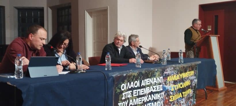 Εεκδήλωση έγινε στο Αίγιο, με θέμα “ΟΙ ΛΑΟΙ ΑΠΕΝΑΝΤΙ ΣΤΙΣ ΕΠΕΜΒΑΣΕΙΣ ΤΟΥ ΑΜΕΡΙΚΑΝΙΚΟΥ ΙΜΠΕΡΙΑΛΙΣΜΟΥ”, με ομιλητές τον Πρέσβη της Βενεζουέλας στην Ελλάδα Freddy Fernandez και τον Πρέσβη επί τιμή Λεωνίδα Χρυσανθόπουλο.
