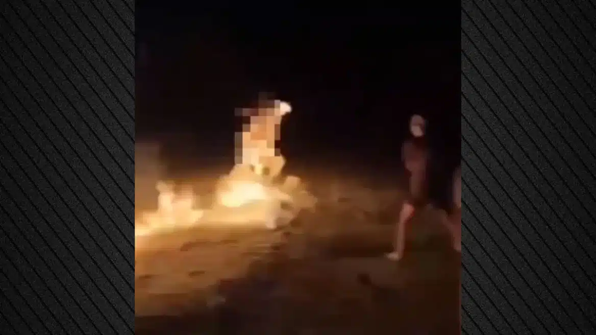 Όσο ο νεαρός καιγόταν, οι φίλοι του γελούσαν και τον βιντεοσκοπούσαν.