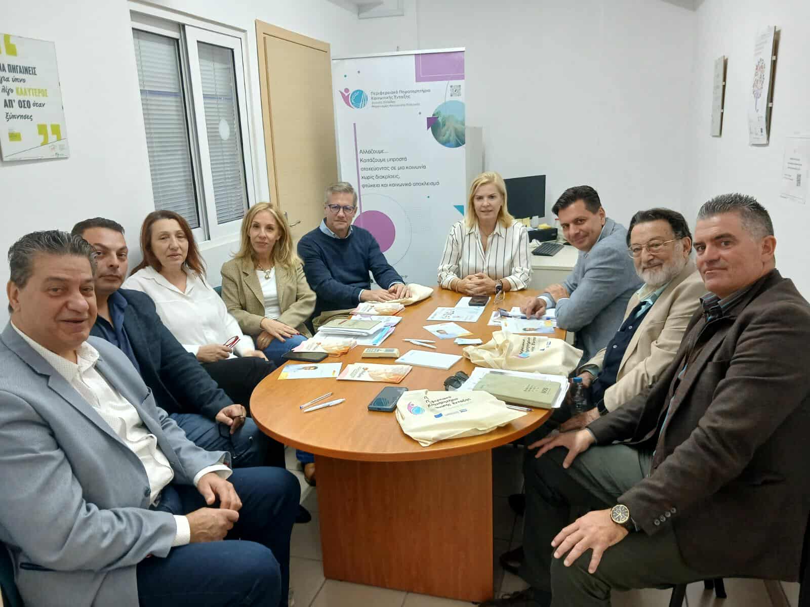Η συνάντηση διεξήχθη σε ιδιαίτερα θερμό κλίμα, χαρακτηρίστηκε από σύμπτωση απόψεων και ήταν ιδιαιτέρως εποικοδομητική. Από πλευράς σπιράλ συμμετείχαν επίσης ο Θάνος Δούρος – δημοτικός σύμβουλος, ο Γιώργος Μπατάλης -συντονιστής της Ομάδας Εργασίας #Κοινωνία-Υγεία-Πρόνοια, ο Μάκης Κουλούρης -μέλος του Πολιτικού Συμβουλίου και ο γιατρός Δημήτρης Παπαλάμπρου. Την Αντιπεριφερειάρχη συνόδευαν -και ενημέρωσαν αναλυτικά την αντιπροσωπεία του σπιράλ για τις αρμοδιότητές και τις δράσεις τους- οι υπηρεσιακοί συνεργάτες της: Έλλη Μπέτση – Διευθύντρια Κοινωνικής Μέριμνας, Μαρία Παππά – Προϊσταμένη Τμήματος Κοινωνικών Υπηρεσιών και Κοινωνικού Παρατηρητηρίου Ένταξης και Εμμανουήλ Σουρής – Ψυχολόγος και Κοινωνικός Σύμβουλος της Περιφέρειας.
