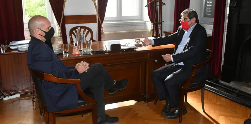 Με τον Δήμαρχο Πατρέων Κώστα Πελετίδη συναντήθηκε σήμερα Πέμπτη στο Δημαρχείο, ο Πρόεδρος του κόμματος ΜέΡΑ25, Γιάνης Βαρουφάκης.