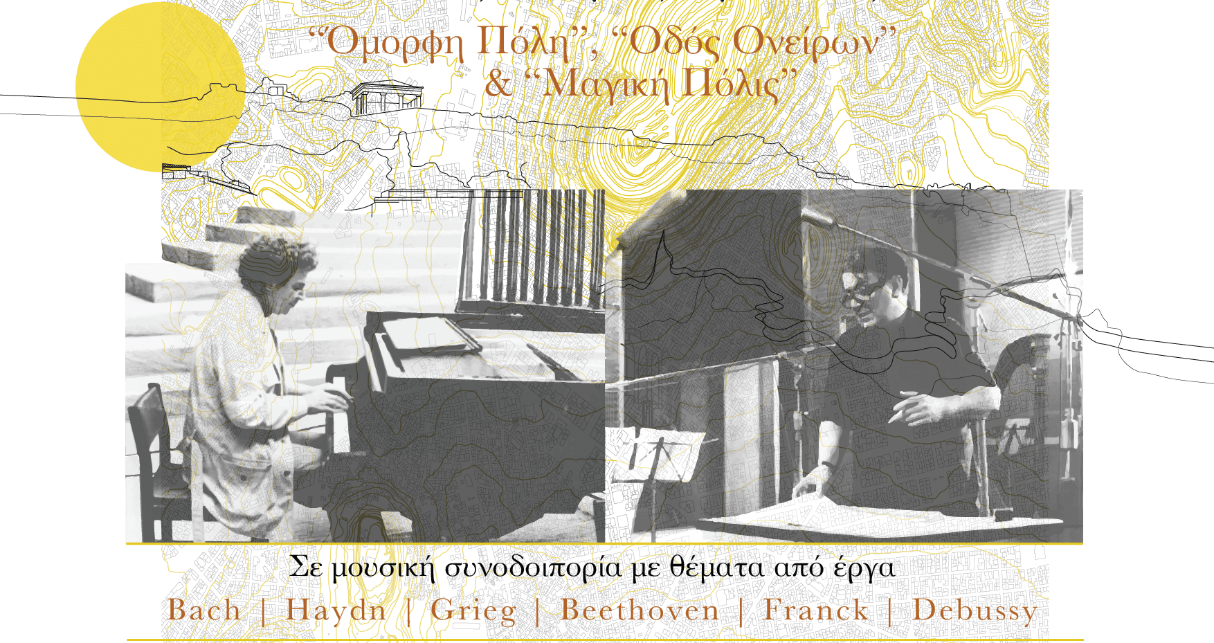 Πρόκειται για ένα αφιέρωμα στους μουσογέννητους Μίκη Θεοδωράκη και Μάνο Χατζιδάκι, με αφορμή τη συμπλήρωση 100 χρόνων από τη γέννηση τους. Η συναυλία στηρίζεται σε επιλεγμένα τραγούδια από τρεις ιστορικές παραστάσεις «Όμορφη Πόλη», «Οδός Ονείρων» και «Μαγική Πόλις», σε σύμπραξη και μουσική συνοδοιπορία με θέματα από έργα των Bach, Haydn, Beethoven, Grieg, Franck, Debussy…