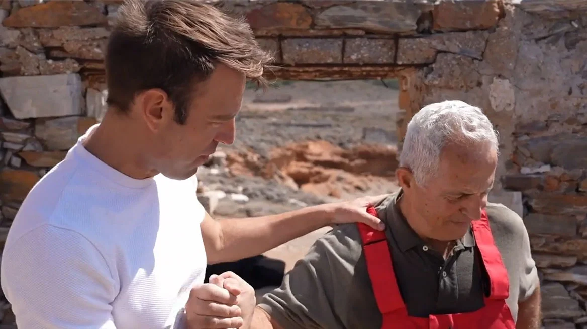 Με φόντο τη Μακρόνησο, ο κ. Αποστολάκης προβάλλει ξαφνικά στο πλάνο, όταν ο αφηγητής Στέφανος Κασσελάκης αναφέρεται στην ανάγκη της ενότητας του κόμματος την επαύριον των εσωκομματικών εκλογών, λέγοντας πως “γιατί το συλλογικό είναι πιο μεγάλο από τον καθένα μόνο του. Γι’ αυτό θα είμαστε όλοι μαζί”.