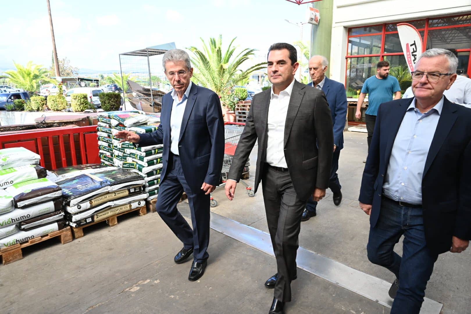 Τα δυο υψηλόβαθμα στελέχη της κυβέρνησης έγιναν δεκτά από μέλη της διοίκησης της ΠΕΣ, με επικεφαλής τους αντιπροέδρους κ.κ. Καρέλη και Μιχαλόπουλο και τον γενικό διευθυντή κ. Μίλτο Σταυρόπουλο και ξεναγήθηκαν στις εγκαταστάσεις της ΠΕΣ, στο συσκευαστήριο και στο κατάστημα αγροεφοδίων.