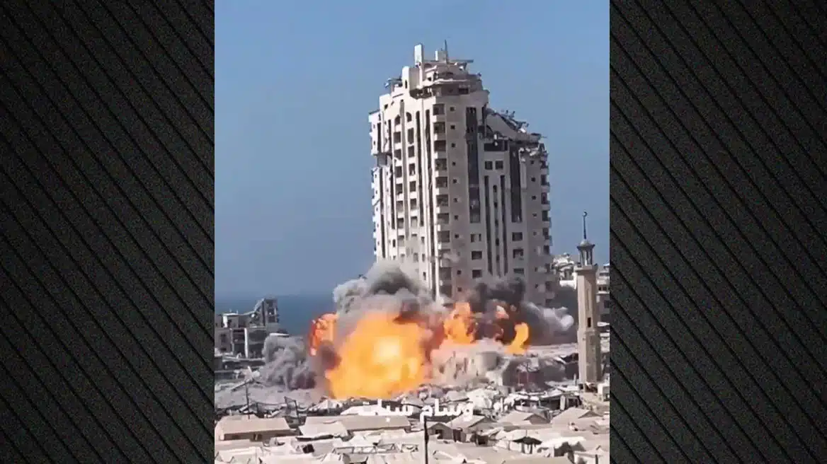 Το 12οροφο κτίριο- το οποίο ονομάζεται «Ο Πύργος Μουστάχα» – που χτύπησαν οι Ισραηλινές Αμυντικές Δυνάμεις (IDF) είναι ένα από τα ψηλότερα στην πόλη της Γάζας.