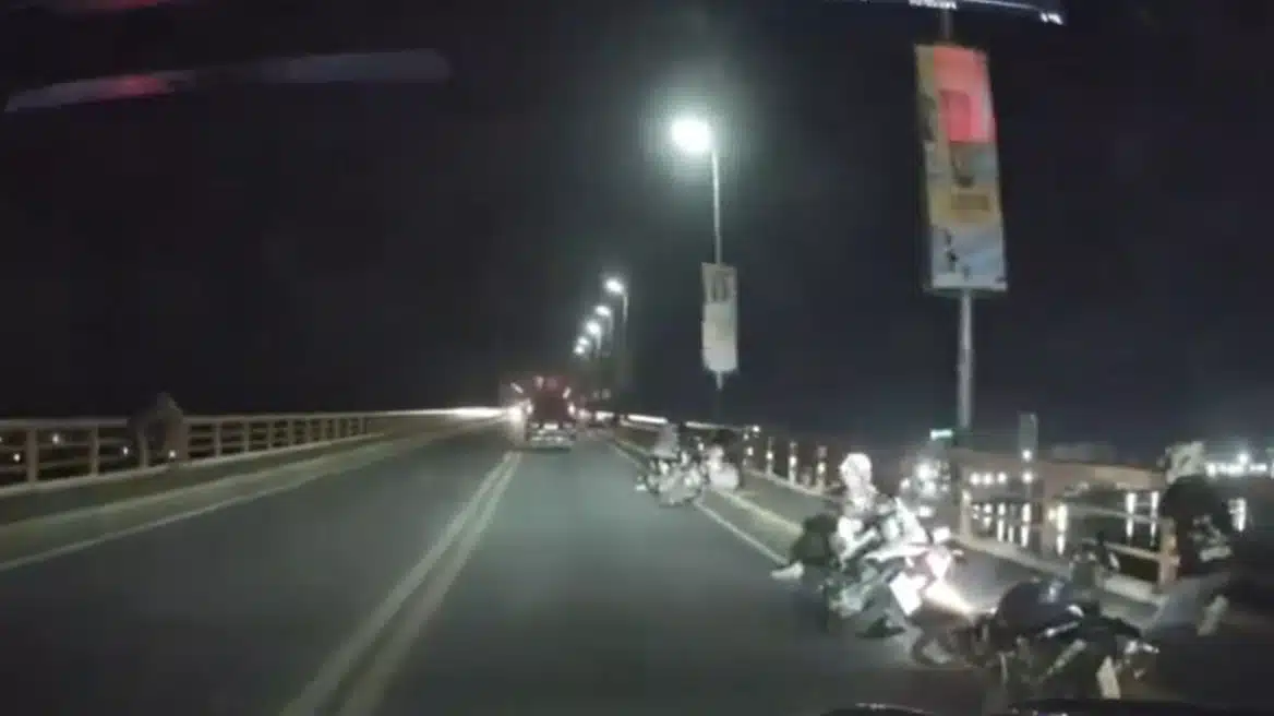 Βίντεο αποτυπώνει τη στιγμή τρόμου που έζησαν οδηγοί την ώρα που διέσχιζαν γέφυρα, με τους αναβάτεςς δικύκλων να μην μπορούν να κρατήσουν την ισορροπία τους, καθώς η γέφυρα πήγαινε πέρα-δώθε σαν εκκρεμές.