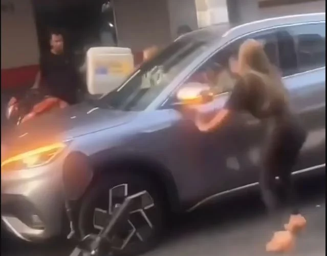 Χτυπούσε το αμάξι εξοργισμένη