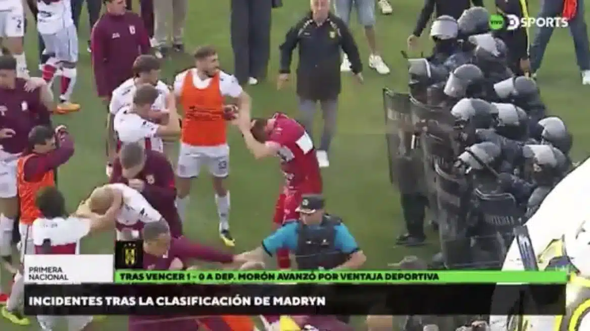 Απίστευτα σκηνικά εκτυλίχθηκαν στην Αργεντινή κατά τη διάρκεια της αναμέτρησης Deportivo Madryn – Deportivo Morón για την ημιτελική φάση των play-offs ανόδου της Β’ κατηγορίας, που εξελίχθηκε σε γενικευμένη συμπλοκή μέσα στον αγωνιστικό χώρο, αναγκάζοντας την αστυνομία να επέμβει κάνοντας χρήση χημικών.