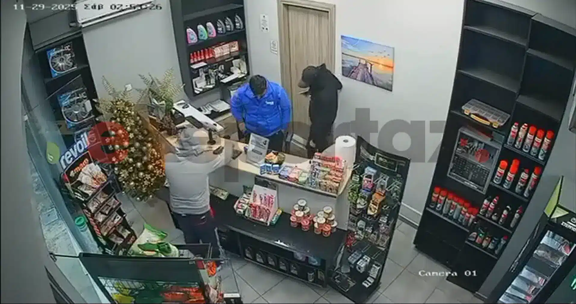 Στα πλάνα βλέπουμε τα μέλη της σπείρας να εισβάλλουν σε καταστήματα και υπό την απειλή όπλων και αιχμηρών αντικειμένων να εξαναγκάζουν τους υπαλλήλους να αδειάζουν τα ταμεία.