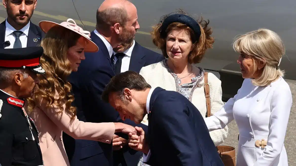 Προς τιμήν του γαλλικού προεδρικού ζεύγους, που ξεκινά τριήμερη επίσκεψη στο Ηνωμένο Βασίλειο, στρώθηκε το κόκκινο χαλί. Κατεβαίνοντας από το αεροπλάνο, ο Εμανουέλ Μακρόν επιφύλαξε χειροφίλημα για την πριγκίπισσα της Ουαλίας, ενώ στη συνέχεια θα ταξιδέψουν στο Ουίνδσορ.